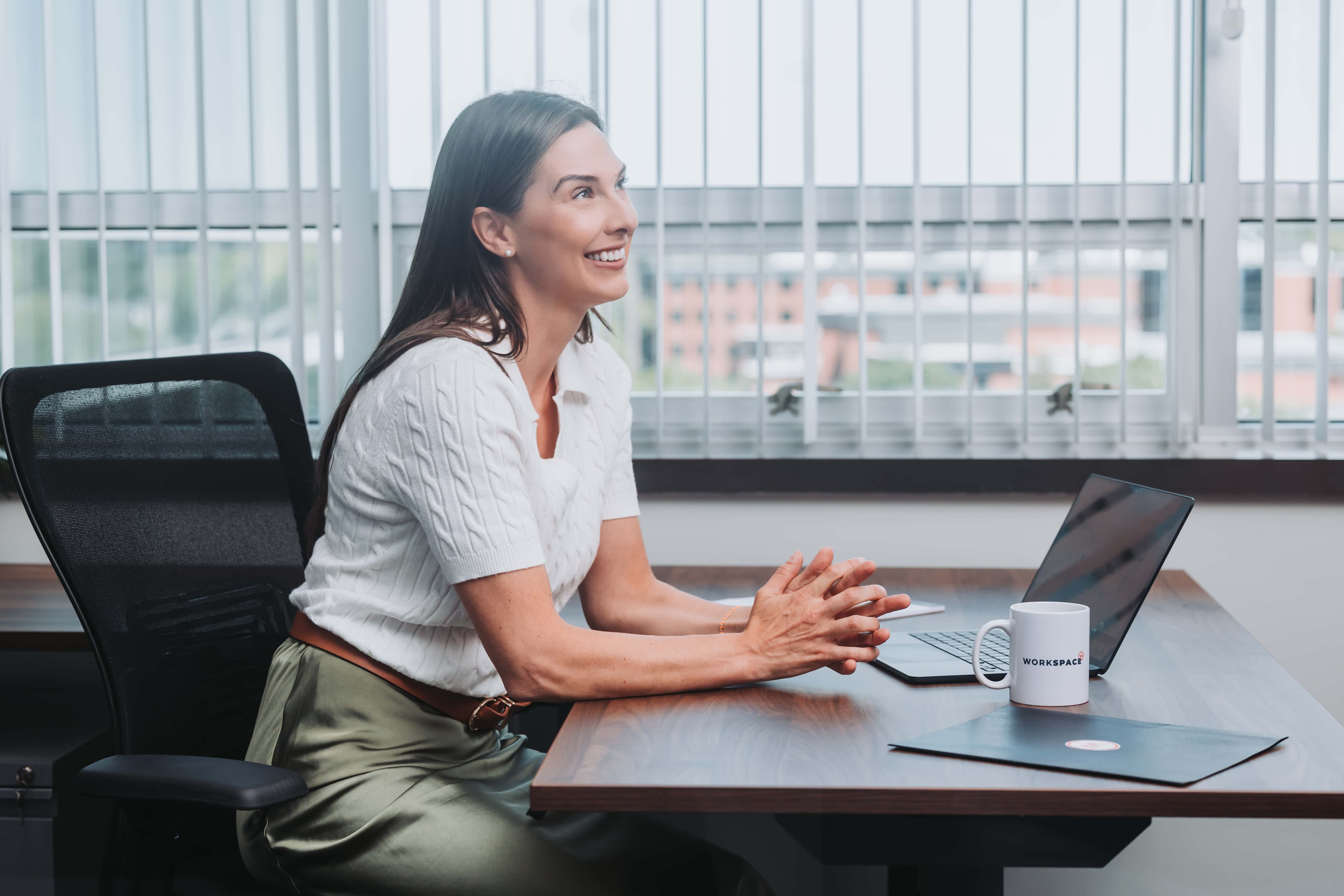 - A lockable, fully furnished private office, desk, chair, storage